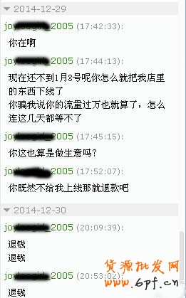 在24號(hào)的時(shí)候,我就發(fā)現(xiàn)我的寶貝上線了,到29號(hào)的時(shí)候我又點(diǎn)開(kāi)了他的站點(diǎn),因?yàn)檫@幾天我店里的流量跟平時(shí)沒(méi)有什么大的變化,這個(gè)情況讓我覺(jué)得有些奇怪,打開(kāi)他的站點(diǎn)之后,就發(fā)現(xiàn)我的寶貝沒(méi)有了,分別點(diǎn)開(kāi)幾個(gè)欄目都沒(méi)有找到我的寶貝影子,這下我的心又提了起來(lái),試著跟站點(diǎn)上其他寶貝的賣家聯(lián)系了一下,他們都說(shuō)不知道怎么回事,我又問(wèn)他們交錢沒(méi)有,他們說(shuō)不知道,根本就沒(méi)交過(guò)錢,我的頭一下子就大了,這才意識(shí)到“被騙了”。于是我又趕緊聯(lián)系那個(gè)站長(zhǎng),上圖吧: