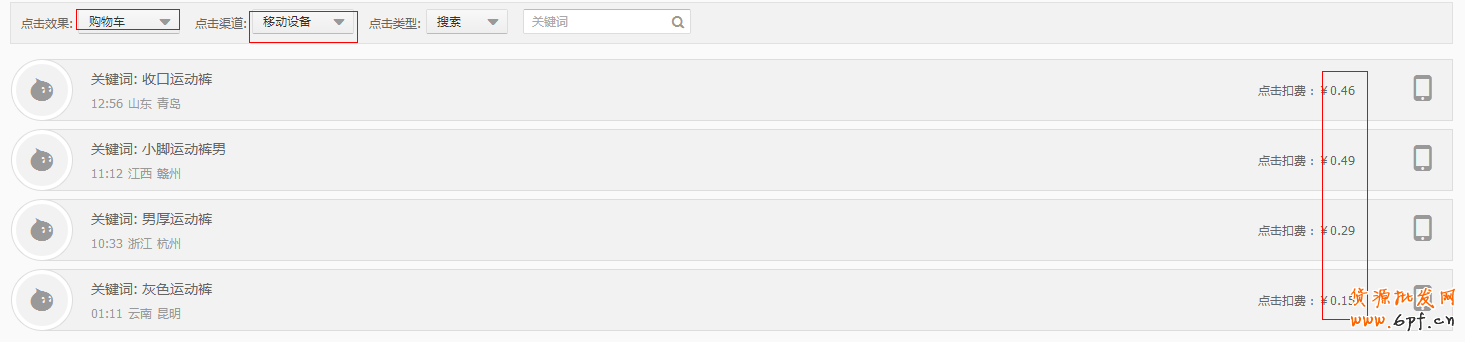 3、觀察關(guān)鍵詞的點(diǎn)擊單價(jià)來判斷此關(guān)鍵詞的成交趨勢,如下: