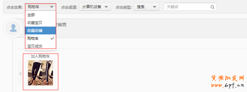 (3)最后點(diǎn)擊[點(diǎn)擊類型]選擇[搜索]或者[定向]查看加入購物車的來源