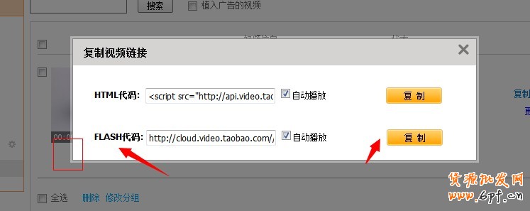 視頻發(fā)布成功后,點(diǎn)擊【復(fù)制視頻鏈接】復(fù)制視頻的FLASH代碼,然后把視頻FLASH代碼加入到免費(fèi)添加視頻的代碼當(dāng)中,如圖:
