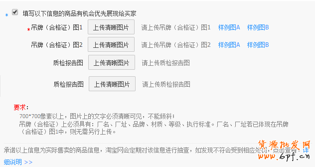 選擇相應(yīng)材質(zhì)時開放吊牌和耐久標的上傳入口 涉及材質(zhì)為:腰帶/皮帶/腰鏈的“頭層牛皮”“二層牛皮”、圍巾/絲巾/披肩的“蠶絲”“羊毛”“羊絨” |