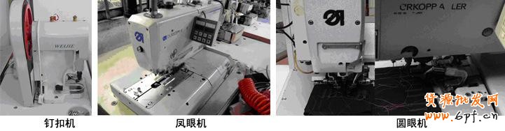 關于這一步驟,很多沒有參與過制作服裝的客戶對特殊工藝的概念都比較模糊。由于現在服裝對于工藝也越來越講究,很多服裝在生產過程中都加進了很多特殊工藝,設計元素比較濃厚的當今淘寶品牌裂帛就是一個很具代表性的例子。特殊工藝主要包括:印花、燙圖、繡花、洗水、植絨、訂珠、打棗、壓折、專機、釘扣等等。釘扣用分為很多種:如平眼扣、磨菇扣等等,所用的機器都不同。一件成衣并不是光用電腦平車就能車完,它還包扣括剛剛介紹的這些特殊工藝制作,不同的款式運用不同的工藝制。生產時間隨著工藝的不同也跟著變化。以下給大家介紹幾款特殊工藝機器。