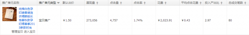 該款寶貝推廣前期主要利用全店計(jì)劃中數(shù)據(jù)較好的關(guān)鍵詞進(jìn)行測(cè)試,剛推廣不久便有轉(zhuǎn)化,因此開始添加更多關(guān)鍵詞進(jìn)行測(cè)試,并逐步對(duì)其進(jìn)行加大,后點(diǎn)擊率上升,PPC下降,在不應(yīng)季的情況下也有較好的轉(zhuǎn)化。