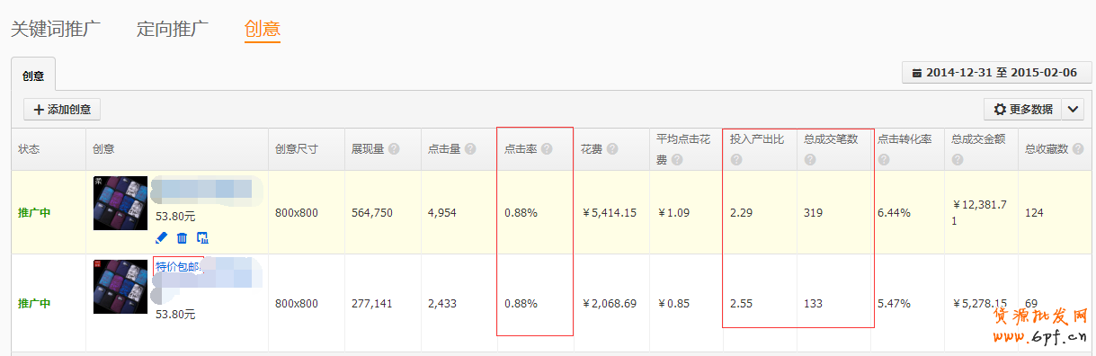 調(diào)整優(yōu)化后,創(chuàng)意數(shù)據(jù)具體如下圖:
