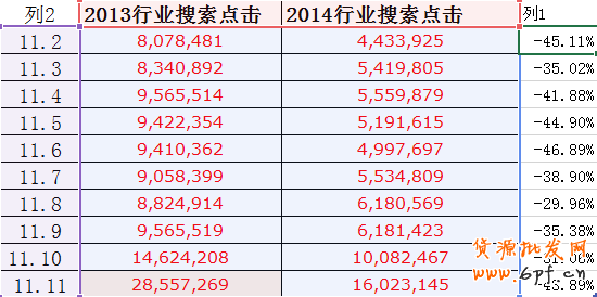 14年行業(yè)與13年行業(yè)搜索相差40-50%,按照這組數(shù)據(jù),14年雙11最多完成15萬(wàn)左右的搜索,而事實(shí)上14年雙11期間完我們成了20多萬(wàn)的搜索數(shù)據(jù),這是怎么來的?