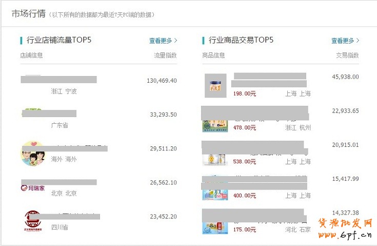 從數據分析的另一個維度來看:比較。有句話說得好,“無比較,無數據”。生意參謀也提供同品類行業(yè)店鋪流量前5的店鋪,和同品類商品交易前5的寶貝,這樣一來,我們也可以比較留意同行,汲取同行優(yōu)秀的地方,補足自己欠缺的。