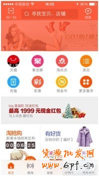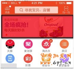 通過IPHONE 5S 進(jìn)入淘寶APP首頁是這樣的,除了頁頭橙色占比10%外,其他區(qū)域基本都以白色為主,在這個尺寸的頁面上要突顯你的素材,最簡單的方法就是靠顏色。
