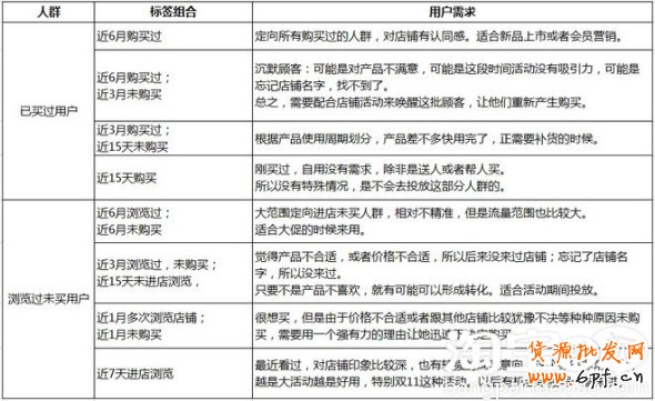 大體來說,購買過的,做新品推薦和會員;未購買的,做轉化。如果想精細化投放,就需要細分下去,找出最有效的標簽組合。