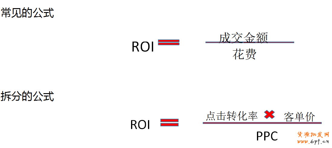 做到以上三點后,寶貝的ROI自然就可以得到提高,而ROI越高,表明賬戶狀態(tài)越好,獲利越多。下面是ROI的兩個公式: