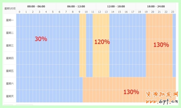 ?。?)周六、周日:是流量較好的時(shí)間。10:30–00:00都可以設(shè)130%來獲取更多流量。