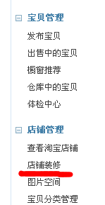 然后我們打開淘寶店鋪的賣家中心,點擊店鋪管理的店鋪裝修