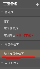 打開后,我們在點擊頁面管理中的,默認(rèn)寶貝詳細(xì)頁