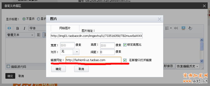 在鏈接的部分我們填入時尚九塊郵的官方網(wǎng)址:http://fashion9.uz.taobao.com,然后點擊確定