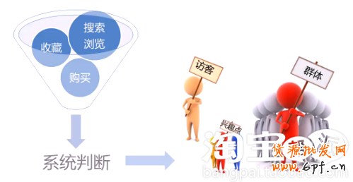 綜合消費(fèi)者歷史瀏覽、搜索、收藏、購買等行為確定用戶與店鋪的關(guān)聯(lián)關(guān)系。選定店鋪ID,系統(tǒng)可以向與選定的店鋪所有有關(guān)聯(lián)的用戶投放推廣計劃。