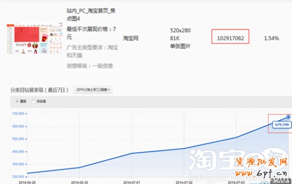 而近7天的眼鏡最高展現(xiàn)量為679,340(67萬),占全部流量的0.66%。