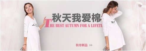 2、圖2 表達的信息更簡單,從文案上看,一句話突出了“秋季”、“棉”的信息,恰好能抓住孕婦的需求,下方的小箭頭更能在潛意識的引導買家點擊。從排版上看,左右兩個模特的排版也是服飾類產(chǎn)品常用的排版,而且兩張圖從左到右,暗示買家衣服適合不同懷孕階段穿,增加購買欲望。