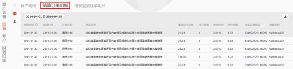 ②結(jié)算訂單明細(xì):可以查詢到具體的淘客昵稱及其對應(yīng)的推廣成交訂單、推廣量等詳細(xì)數(shù)據(jù)。