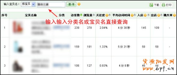 在寶貝較多時(shí),您還可以通過(guò)按分類或按寶貝進(jìn)行相應(yīng)的寶貝查詢,快速了解寶貝的情況: