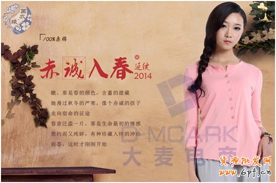 由于是春季主題海報,因此我們用模特展示此款寶貝的時候,建議采用近景,放大細節(jié)展示,該款寶貝衣領以及袖子比較有色特,為了放大這兩個細節(jié),所以展示側(cè)面半身為最佳角度;