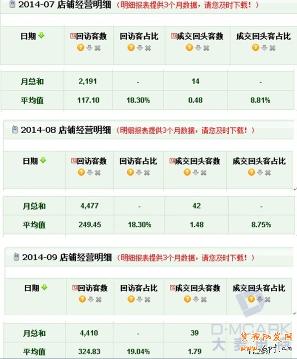 7月回訪客2191,成交回頭數(shù)14名、8月回訪客4477,成交回頭客42名。