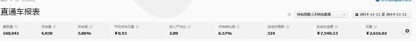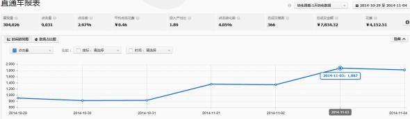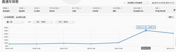 雙11當(dāng)天全店成交用戶(hù)數(shù)1336筆,直通車(chē)成交324筆。約占到了全店的1/3。雖然對(duì)于這個(gè)結(jié)果我還不是很滿(mǎn)意,但是至少,這個(gè)店鋪每天直通車(chē)可以帶來(lái)的單子已經(jīng)達(dá)成了掌柜的期望,而且還有點(diǎn)賣(mài)超。過(guò)了雙十一之后這幾天,一直是出于“后雙十一”時(shí)代,這個(gè)時(shí)候買(mǎi)家的購(gòu)買(mǎi)力普遍下降,已經(jīng)沒(méi)有那么大的購(gòu)買(mǎi)需求,而我們的店鋪依然是高歌猛進(jìn),成交筆數(shù)每天約在100筆左右。