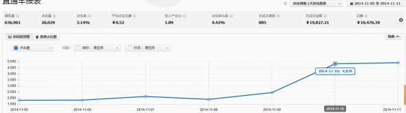 第四周,我們已經(jīng)問(wèn)掌柜要到了每天900的日限額,當(dāng)然我知道,這些遠(yuǎn)遠(yuǎn)不夠,不過(guò)幸運(yùn)的是,掌柜又重新看到了希望!5號(hào)開(kāi)始,我們對(duì)于直通車(chē)的花費(fèi)已經(jīng)提到了2000元,用掌柜的話(huà),花的我肉疼!雖然肉疼,但是還是每天堅(jiān)持充錢(qián),每天晚上與我探討店鋪哪些地方還需要改進(jìn),需要去完善。最終我們敲定,雙十一當(dāng)天的花費(fèi)是2500-2800元,這個(gè)是掌柜的最大限額。