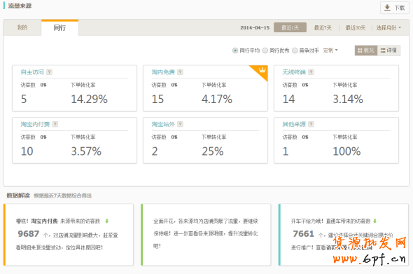 2、淘寶內(nèi)免費:訪客通過淘寶內(nèi)免費的流量渠道進(jìn)入您店鋪。例如:淘寶搜索、淘寶活動、淘寶首頁、淘寶論壇、淘寶頻道頁面等淘寶內(nèi)付費:是指需要付費的流量