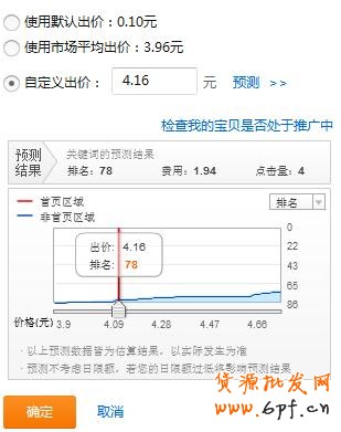 4.一般來(lái)說(shuō)首頁(yè)1-3名點(diǎn)擊率最高,4-6名也還好。7-11名比較差。還不如12-16名的。第二頁(yè)以后點(diǎn)擊率都不行。建議直通車預(yù)算不是很足的可以設(shè)置在12-16名的位置,這里只是我個(gè)人測(cè)試的結(jié)果,具體還是需要推廣人員根據(jù)自身的情況進(jìn)行測(cè)試。