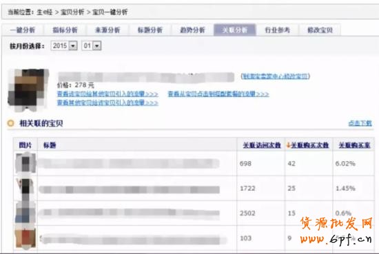 再有一個(gè)就是用老的產(chǎn)品帶動(dòng)新的產(chǎn)品,基礎(chǔ)銷量可以以老帶新,做一個(gè)關(guān)聯(lián)套餐,價(jià)格優(yōu)惠點(diǎn)好吸引買家購買,如此一來也可以讓新款寶貝快速成長,在生意經(jīng)里面可以看到這個(gè)關(guān)聯(lián)分析的數(shù)據(jù)的,這邊截圖的關(guān)聯(lián)購買次數(shù)還是比較高的,百分之六點(diǎn)多就很直觀的看到這幾個(gè)寶貝適合做搭配套餐。