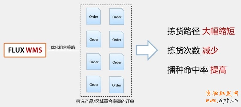 針對(duì)二次播種的訂單優(yōu)化。將產(chǎn)品或作業(yè)區(qū)域重合率高的訂單組成一個(gè)波次,提高播種效率。