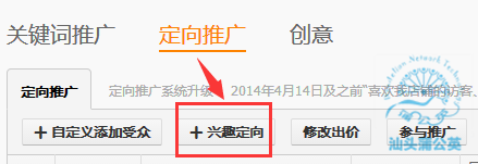 2、進入寶貝選擇“定向推廣”里“興趣定向”:
