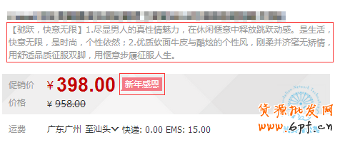 寶貝賣點欄,突破了標題字數(shù)的限制,作為寶貝標題的補充,其功能也是非常強大,內(nèi)容大可不必像標題那么精簡,150個字的補充已經(jīng)是滿足了寶貝高大上的描述和誘人的促銷優(yōu)惠。促銷標題方面,除了常見的“限時搶購、最后三天、年底清倉、新品上架”外,“新年感恩”更像坐上一班快車,率先給買家?guī)硪环N潮流的新意。同時,新一年的期許和感恩更是賦予了寶貝有溫度的生命。