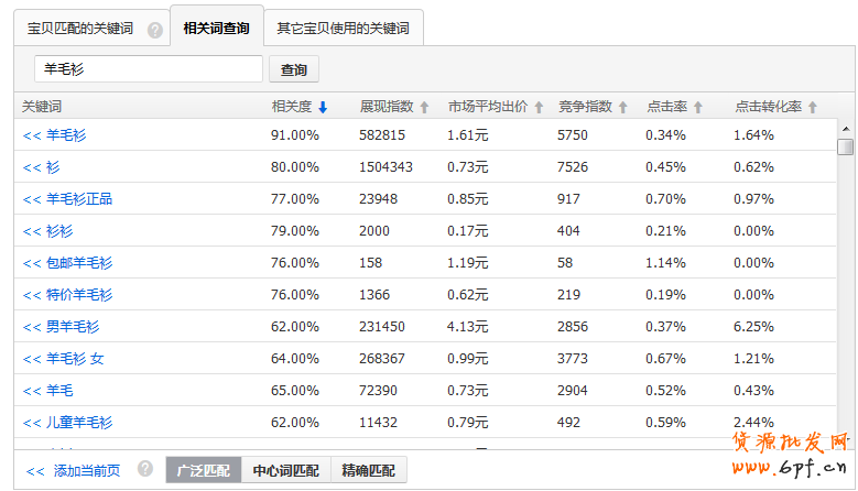 我們在添加直通車關(guān)鍵詞的時候會有下圖這樣的界面: