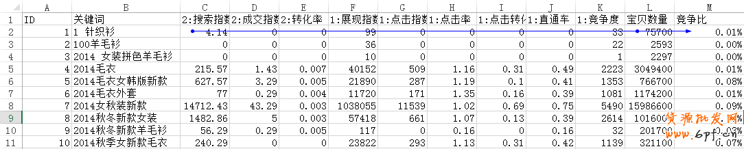 算出競爭比,競爭比=搜索指數(shù)/寶貝數(shù)量