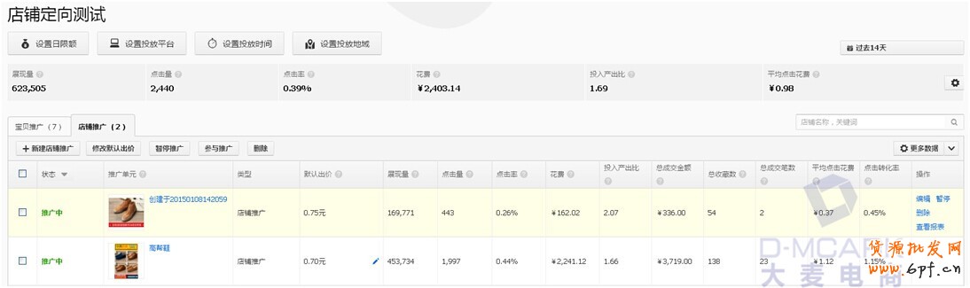從前面兩個例子也會發(fā)現(xiàn),開啟店鋪推廣定向的計劃更容易獲取流量,所以淘寶/天貓直通車花費預(yù)算不是很大的店鋪建議不要把出價出得很高,建議先從幾毛錢開始測試,沒有流量再慢慢加大就好了。而且它本身的PPC也遠遠低于普通的店鋪推廣和店鋪的整體PPC,所以是沒有必要去出很高的價格,避免淘寶/天貓直通車燒爆了。