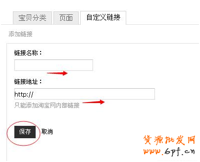步驟6:鏈接名稱寫微淘主頁,鏈接地址粘貼你在第一步時復(fù)制的網(wǎng)頁地址,然后點擊“保存”即可。