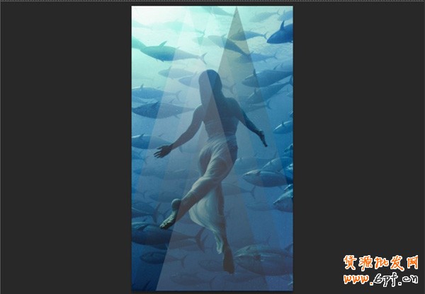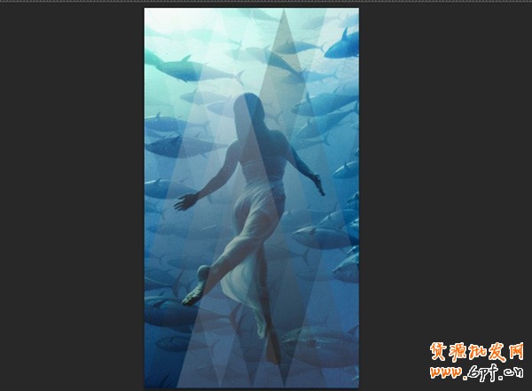 為了讓圖片有另類的表現(xiàn)模式,這里我嘗試了度三個三角形進行編組,,然后再復制組,得到的復制組,我做了一個180度旋轉,并將復制組的混合模式改為了"疊加"。最后出現(xiàn)有了這種效果: