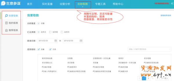 2015年2月初自助取數(shù)升級,新增更多數(shù)據(jù)指標和推薦報表。