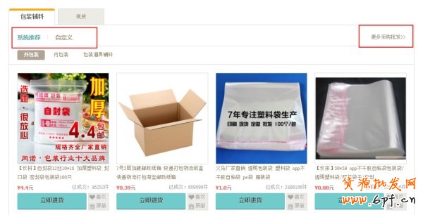 提供包裝輔料與現(xiàn)貨兩類采購(gòu)批發(fā)貨源;并且在包裝輔料提供,系統(tǒng)推薦與自定義的方式,立即進(jìn)貨解決貨源問(wèn)題,再也不用起早摸黑的趕路進(jìn)貨嘍!