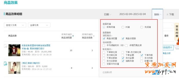 2、最近7天、最近30天、每個(gè)月,商品銷售是漲了還是跌了,商品銷售趨勢(shì)讓你看清楚。同樣提供所有終端、PC端、無(wú)線端三個(gè)終端數(shù)據(jù),打開(kāi)指標(biāo)選項(xiàng)發(fā)現(xiàn)新大陸,指標(biāo)應(yīng)有盡有!