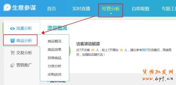 入口:生意參謀>>經(jīng)營(yíng)分析>>商品分析