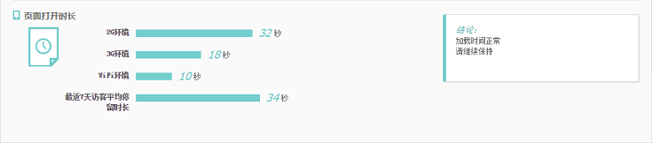 頁(yè)面打開時(shí)長(zhǎng),是我們非常在意的一環(huán),打開越慢,跳失的可能就越高。所以,當(dāng)時(shí)有“2G網(wǎng)絡(luò)下不要超過6秒”這一說法。有“頁(yè)面打開時(shí)長(zhǎng)”這一工具,就讓我們會(huì)有更多的參考依據(jù)。另外,“訪客平均停留時(shí)長(zhǎng)”,也是我們?cè)谝獾囊稽c(diǎn),如果停留時(shí)間越長(zhǎng),產(chǎn)生交易的可能性就越大,尤其是該數(shù)值高于打開時(shí)長(zhǎng)。
