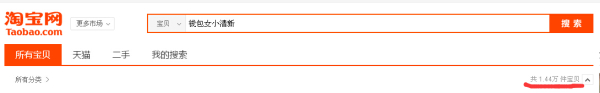 我們在經(jīng)驗很非常豐富前提下,也許就可以判斷關(guān)鍵詞是否可以拆分,但如果有部分中小賣家經(jīng)驗不是很豐富呢?那我們就通過淘寶搜索查看關(guān)鍵詞展現(xiàn)的是什么效果,通過在“錢包女和小清新“之間加上空格,也就是“錢包女 小清新”搜索判斷。