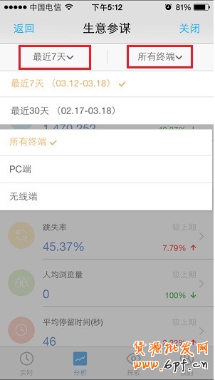 2、可以自由選擇最近7天/最近30天的數(shù)據(jù),也可以PC端、無線端分開來看: