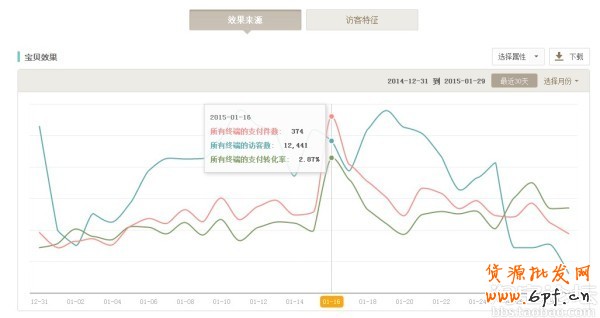 然后是重點(diǎn)了,當(dāng)然是爆款,來看下爆款的走勢,主要是3樣,一是訪客,二是轉(zhuǎn)化,三是成交件數(shù),這三項(xiàng)足夠你分析你的產(chǎn)品了。上圖