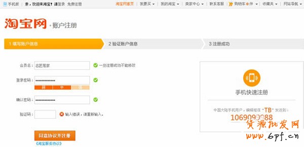 1.賬號(hào)注冊(cè)。首先,登陸淘寶首頁,在頁面左上角點(diǎn)擊“免費(fèi)注冊(cè)”,就會(huì)進(jìn)入以下的頁面,接著填寫資料,設(shè)置賬戶名,手機(jī)號(hào)碼,填寫賬戶信息,設(shè)置支付方式,這些都填寫好,點(diǎn)擊完成,賬號(hào)就注冊(cè)成功了。