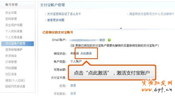 3.支付寶激活。進(jìn)入賣家后臺(tái),點(diǎn)擊支付寶專區(qū),然后點(diǎn)擊“賬號(hào)管理”,支付寶綁定狀態(tài)那,會(huì)有一個(gè)點(diǎn)此激活的文字,點(diǎn)擊進(jìn)去,需要填寫一些證件資料和支付密碼等,填寫好之后點(diǎn)擊“確認(rèn)”支付寶就激活完成。