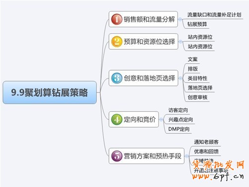 提前做好聚劃算活動的預(yù)熱工作,能夠有效幫助活動期間更好的完成銷售,為店鋪大大提高轉(zhuǎn)化率和增加銷量。下面再以一張圖來總結(jié)本文的關(guān)于聚劃算預(yù)熱之鉆展?fàn)I銷策略,希望能對大家有所幫助。
