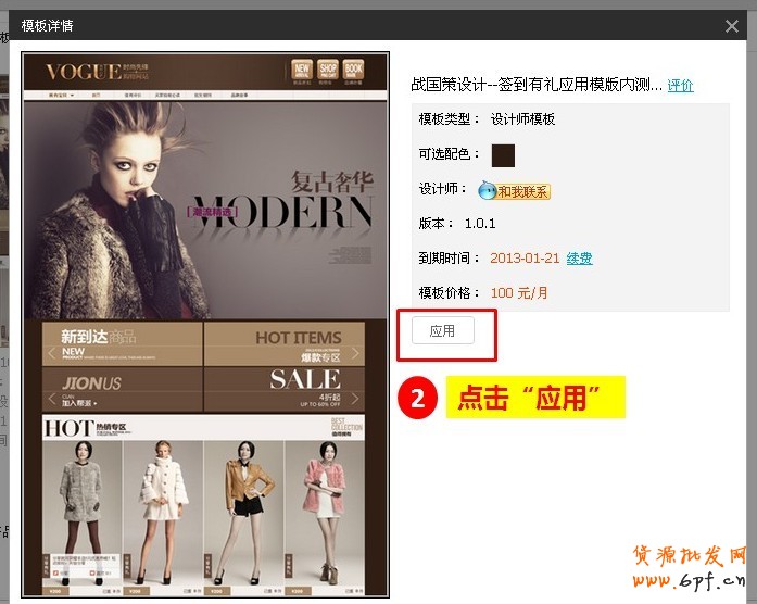1、點(diǎn)擊要應(yīng)用的模板的圖片>>應(yīng)用>>直接應(yīng)用
