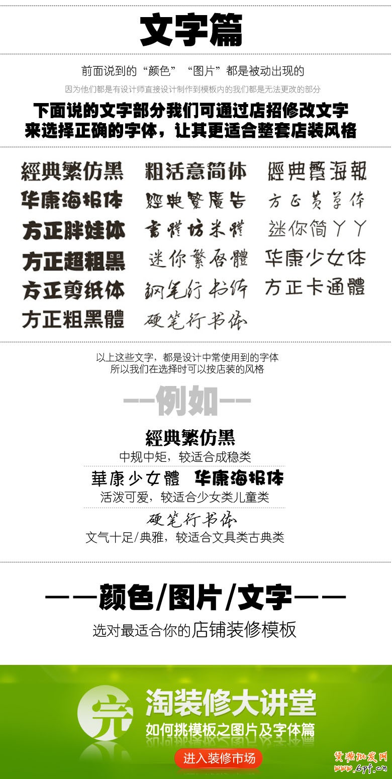 本文來源: 【淘裝修大講堂 第3課 】如何挑模板之圖片及字體篇